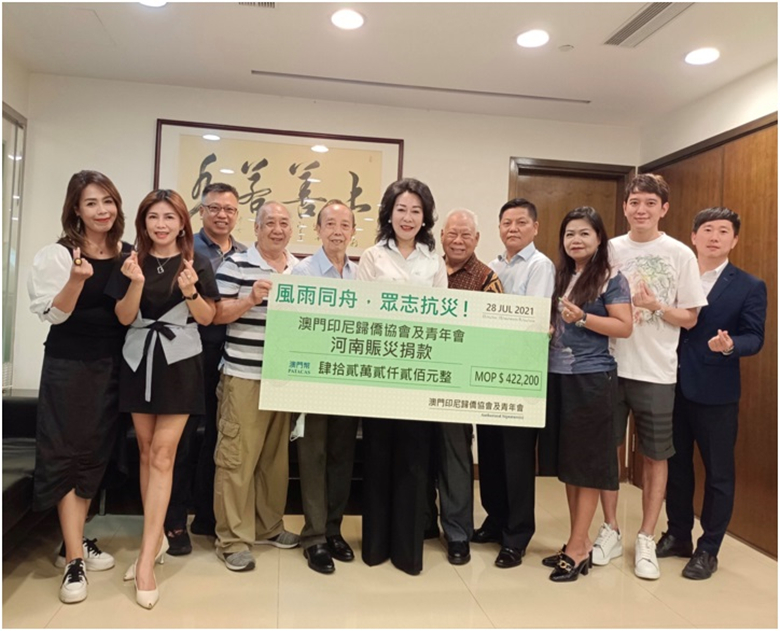 近日,河南省遭遇罕见特大强降雨天气,郑州等城市发生了严重洪涝灾情,造成严重人员伤亡和经济财产损失,澳门印度尼西亚归侨协会及青年会即发起紧急募捐行动,支持灾区同胞尽快解决困难,渡过难关。此次活动反应热烈共筹得善款澳门币442,200元,目前已通过中联办将善款转交河南灾区人民。