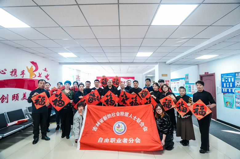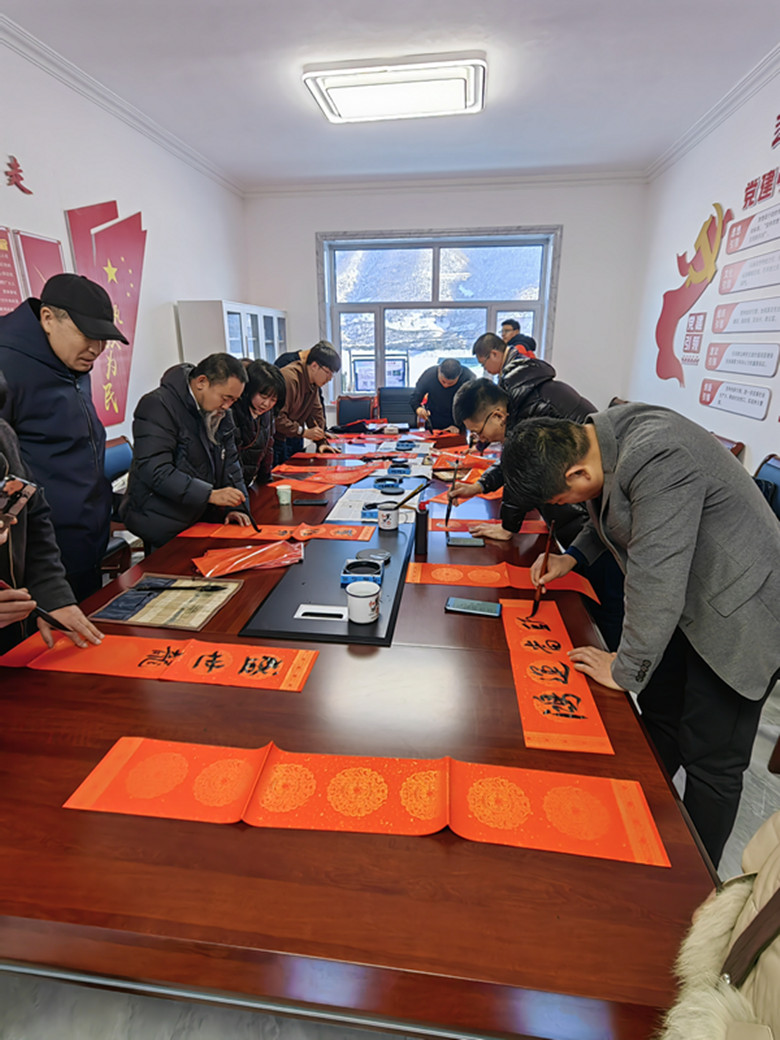 省新阶联自由职业者分会的书法家现场挥毫泼墨,创作春联及福字千余幅,免费赠送社区乡镇党员干部职工、驻村党员干部及群众,受到居民的热烈欢迎。