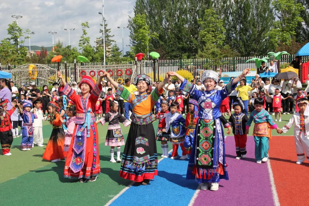 汪清县第四幼儿园全体教师和幼儿共跳一支舞,共同感受中华民族大家庭的团结与和谐。