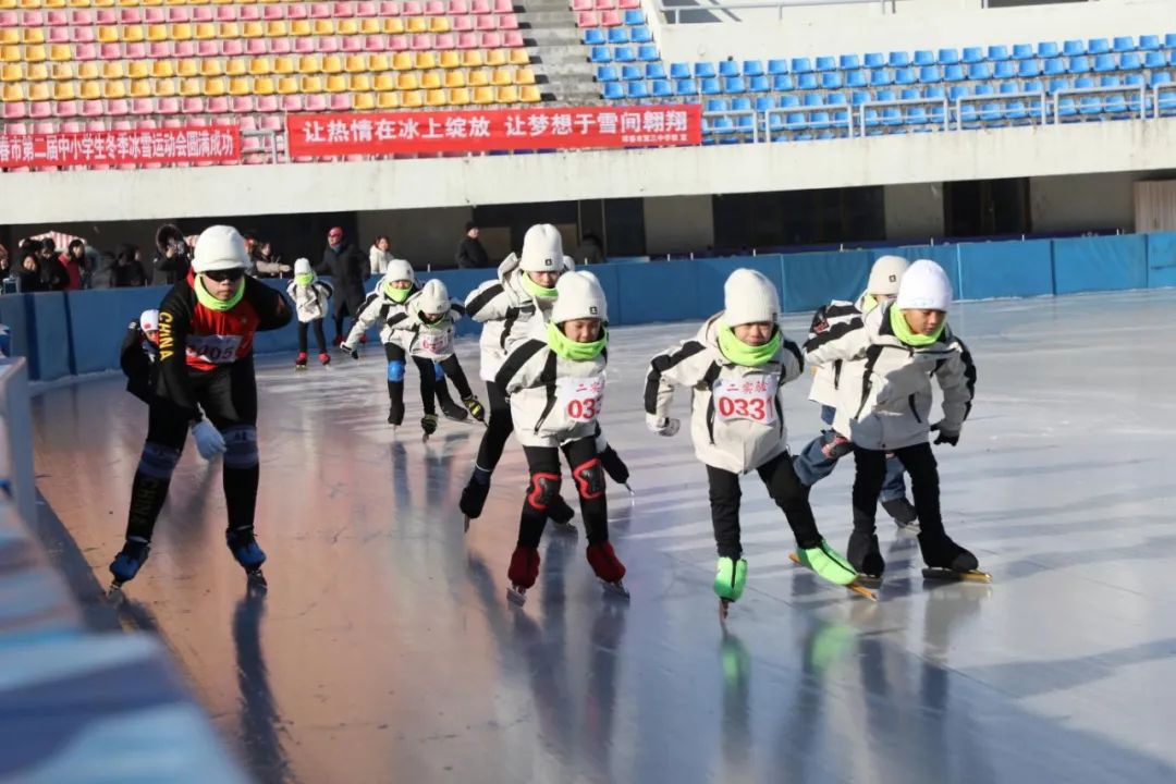 冬日的暖阳照在滑冰场上格外耀眼,日前,以“逐梦冰雪 拥抱未来”为主题的珲春市第二届中小学生冰雪运动会在珲春市体育场举行。百余名小选手身姿矫健,技艺精湛,在滑冰场上你追我赶,激烈角逐。